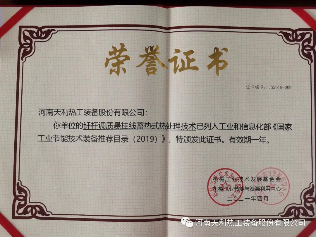 會議發(fā)布了2020年《國家工業(yè)節(jié)能技術(shù)裝備推薦目錄》及《“能效之星”產(chǎn)品目錄》入圍企業(yè)名單,并為2019、2020年入圍企業(yè)發(fā)放能效標(biāo)識及相關(guān)證書。天利熱工兩項技術(shù)被列入推薦目錄,其中釬桿調(diào)質(zhì)懸掛線蓄熱式熱處理技術(shù)被列入《國家工業(yè)節(jié)能技術(shù)裝備推薦目錄(2019)》,超大型4段蓄熱式高速燃燒技術(shù)被列入《國家工業(yè)節(jié)能技術(shù)裝備推薦目錄(2020)》。