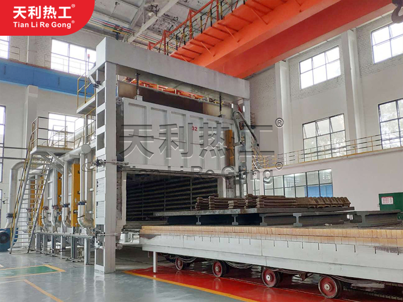 **,臺車爐設備的爐底是可以移動的臺車,工件進行加熱前,臺車在爐外裝料,加熱時則有牽引機構(gòu)將臺車拉入爐內(nèi),工件加熱后則由牽引機構(gòu)將臺車拉出爐外進行卸料,同時,該設備的爐溫可以按照工藝要求在爐內(nèi)完成一個完整的加熱周期,爐溫是比較高的,并且加熱工藝可在較大范圍內(nèi)進行任意調(diào)整。